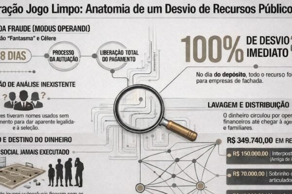 A Polícia Civil do Tocantins finalizou o relatório de um inquérito instaurado na Operação Jogo Limpo que investigou convênios firmados em 2014 para projetos esportivos e recreativos em Palmas. O documento indica prejuízo direto de R$ 650.869,04 aos cofres públicos e resultou no indiciamento de dez pessoas. Funcionamento do esquema Segundo a Divisão Especializada na…