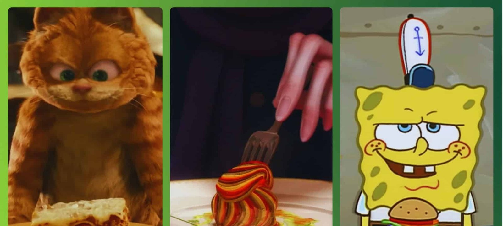 Desde as tirinhas criadas em 1978, o gato laranja de Jim Davis é retratado como consumidor compulsivo de lasanha. A associação aparece nas séries animadas e no filme de 2006, disponível na Disney+ e na Netflix.